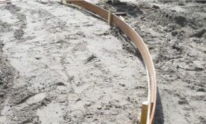 Okraje plochy ohraničíme pomocou obrubníkov. Je možné použiť lemy napr. z hliníku, Cor-Tenu, pozinkovanej ocele alebo PVC, prípadne z dreva, tehly alebo betónu. Pre presné zameranie výšky použijeme nivelačný prístroj.