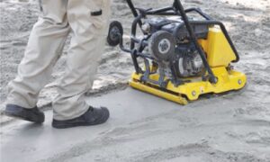 Plochu zhutníme vibračnou doskou.