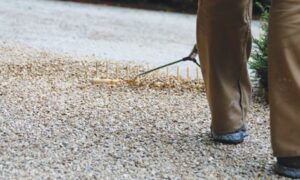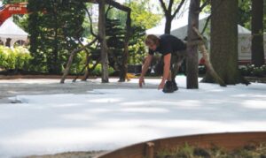 Vrstvu štrku / piesku zarovnáme. Prebytočný štrk / piesok a prípadné ostré cudzie predmety odstránime.