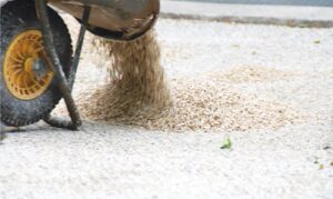Pokiaľ chceme pevný celistvý povrch, je lepšie nepoužiť riečny kameň okrúhly, ale drvené kamenivo s ostrými hranami.