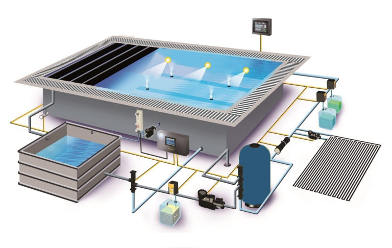 - doplnkové prvky: elektro-ohrev, tepelné čerpadlo, UV lampa, ozónový generátor, solinátor, alebo ionizačná jednotka.