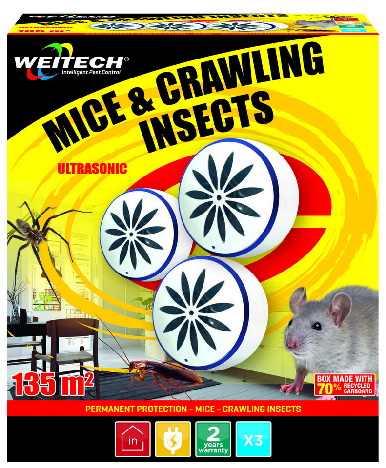Sada Weitech WK3523 predstavuje strategické riešenie pre boj so škodcami v členitých priestoroch, rodinných domoch alebo kanceláriách. Keďže ultrazvuk neprechádza cez pevné prekážky (steny, dvere), použitie jedného výkonného zariadenia na viacero miestností býva neúčinné. Táto sada troch samostatných jednotiek umožňuje pokryť tri oddelené zóny (napr. kuchyňa, pivnica, povala) súčasne. Každé zariadenie generuje ultrazvukové signály v premenlivom pásme 26 000 až 45 000 Hz, ktoré narúšajú nervovú sústavu škodcov, znemožňujú im komunikáciu a nútia ich opustiť chránený priestor.