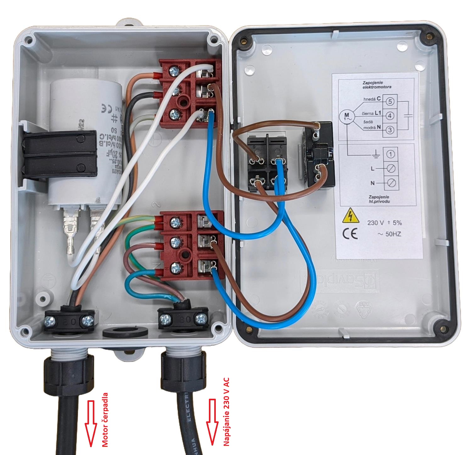 Rozbehová skrinka 0,55 kW (25 µF / 6 A): Ovládanie a ochrana pre ponorné čerpadlá
