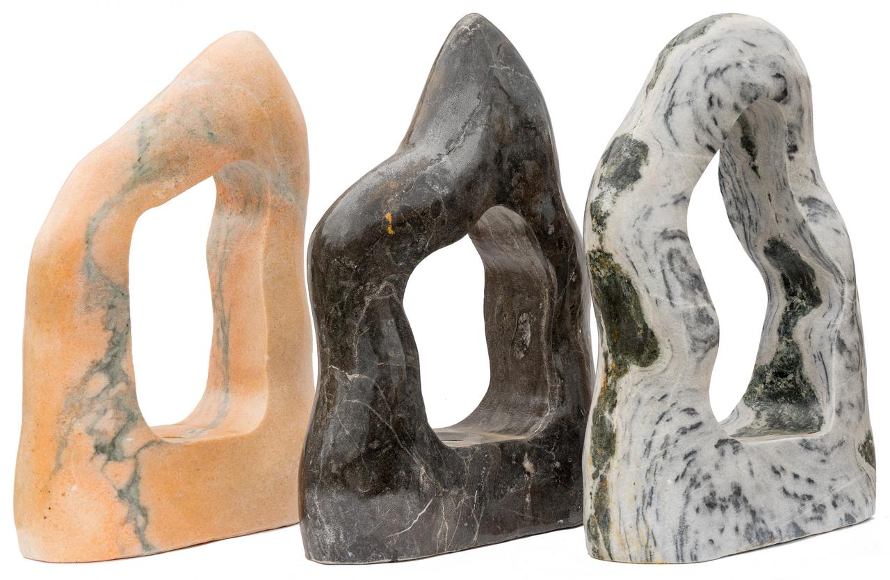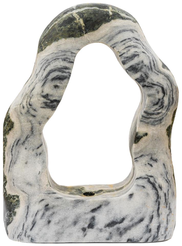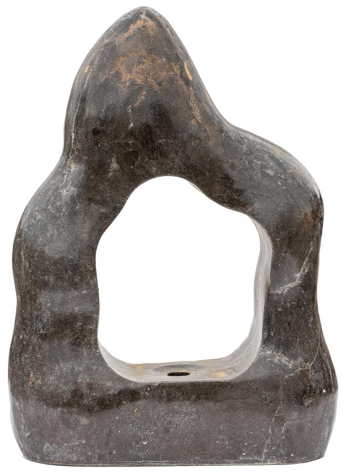 - Vzhľad: Vertikálny monolit (nepravidelný, oblá forma), leštený po celom povrchu s otvorom (okom).