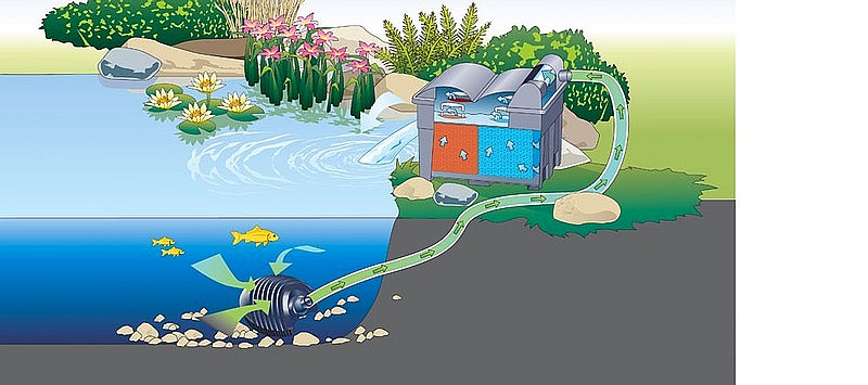 • Obohatenie kyslíkom: Špeciálne vedenie vody cez filter zabezpečuje jej dodatočné prevzdušnenie ešte predtým, ako sa vráti späť do jazierka, čo je kľúčové pre zdravie rýb a mikroorganizmov.