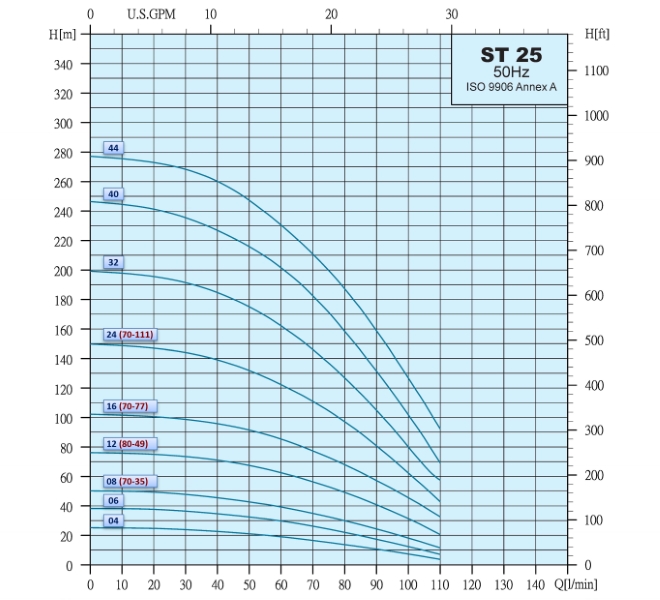 • Optimálny pracovný bod: 80 l/min pri 49 m.
