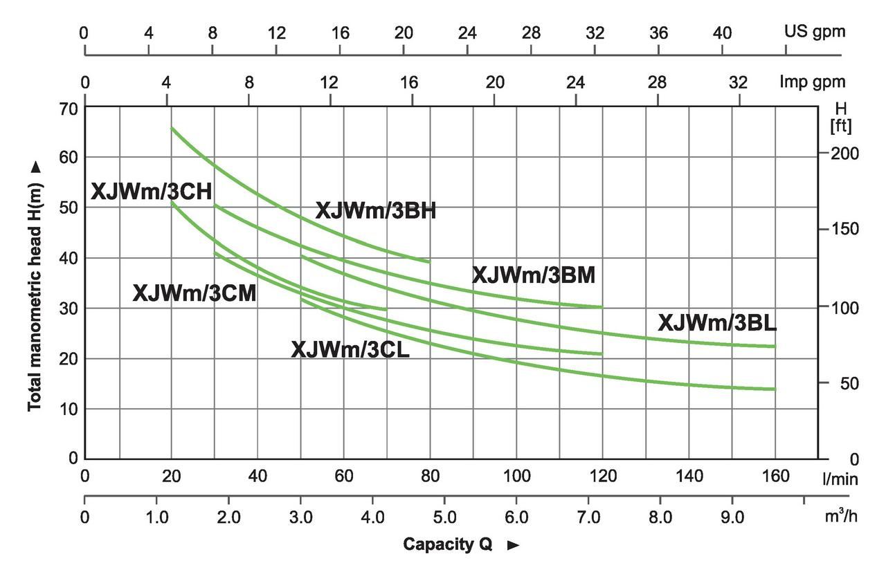 Povrchové čerpadlo LEO XJWm/3BM predstavuje najvýkonnejší model v rade samonasávacích čerpadiel LEO, navrhnutý pre situácie, kde štandardné domáce čerpadlá nestačia. Tento model kombinuje masívne liatinové teleso s odolným obežným kolesom z nehrdzavejúcej ocele AISI 304. S motorom o výkone 1,5 kW generuje výtlak až 60 metrov (6 bar) a masívny prietok 140 l/min (8,4 m3/h). Je to ideálne riešenie pre profesionálne inštalácie, kde sa vyžaduje vysoký tlak, veľký objem vody a maximálna mechanická odolnosť.