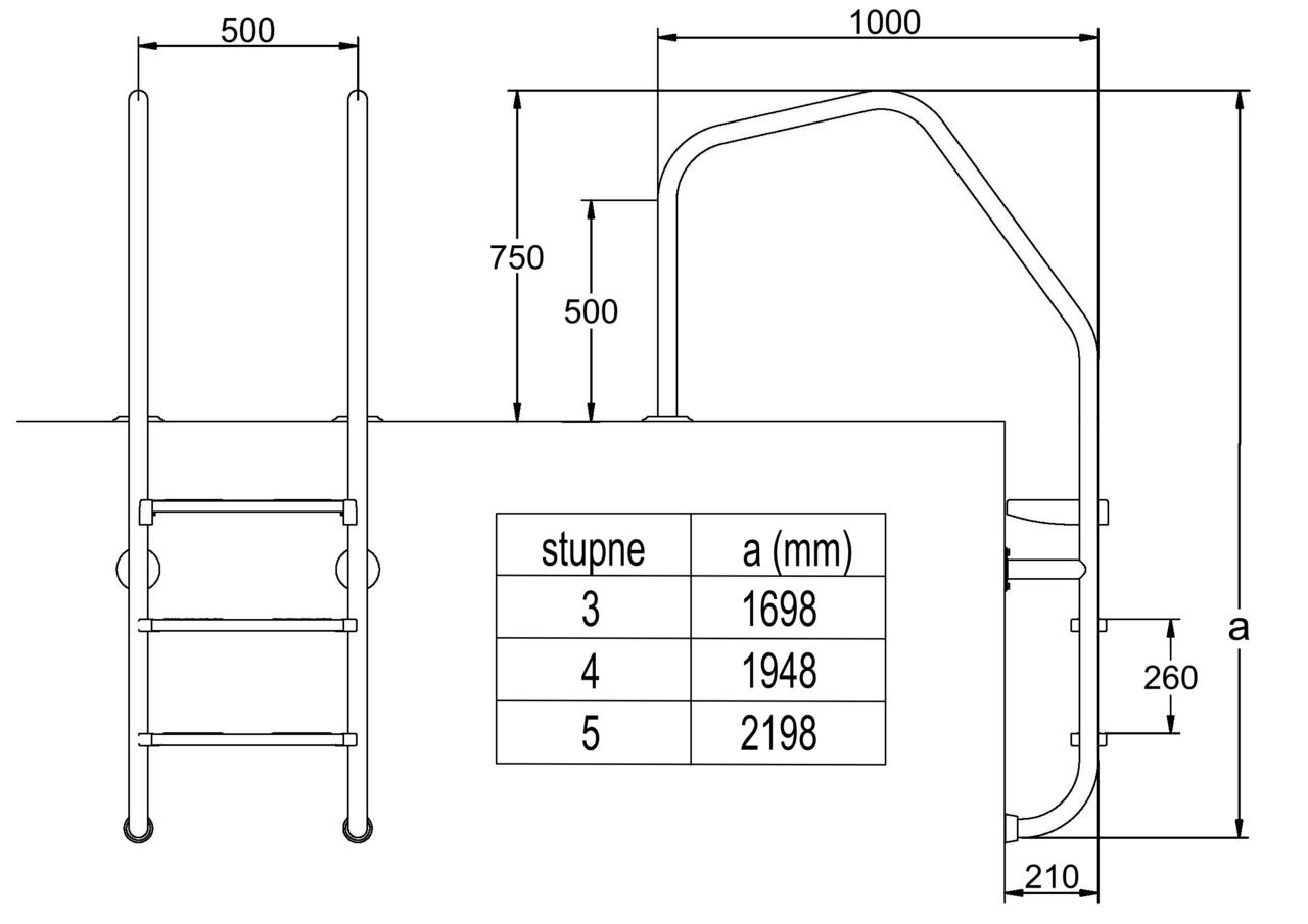 Flexinox rebrík ARC SPECIALE 3 stupňový + nášlap AISI 316