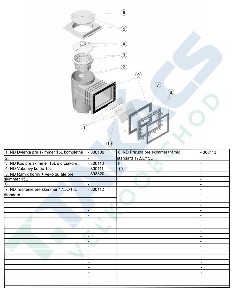 - Ochrana technológie: Vo vnútri tela skimmera je umiestnený košík, ktorý zachytáva hrubé nečistoty. Tým chráni čerpadlo pred zablokovaním a znižuje potrebu čistenia predfiltra na čerpadle.
