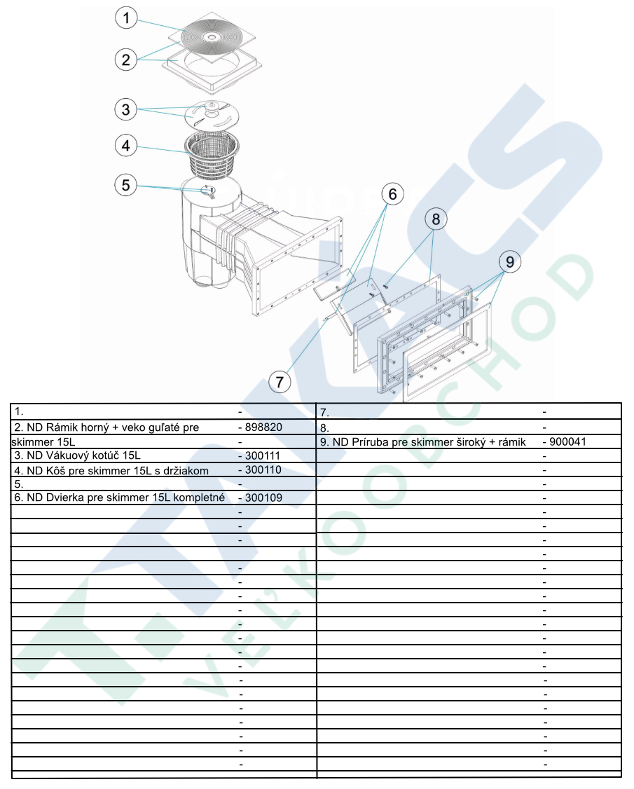 - Osvedčená konštrukcia: Telo skimmera má štandardnú kapacitu 15 litrov, čo je rokmi overená veľkosť pre optimálne fungovanie filtrácie a dostatočný priestor pre zachytávanie hrubých nečistôt.