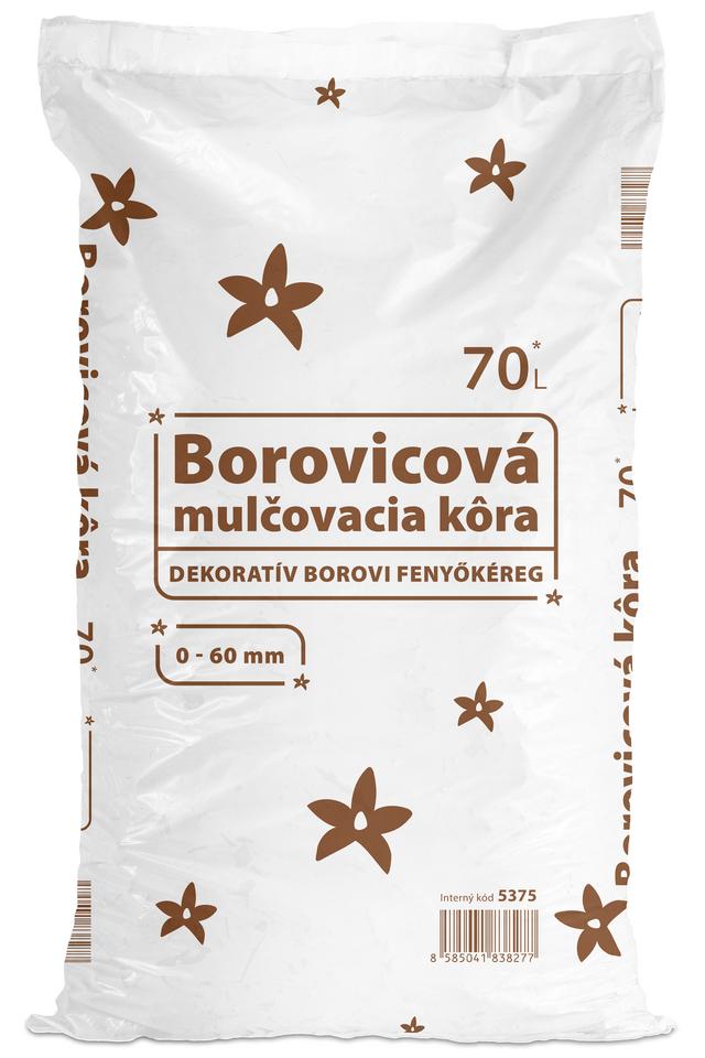 Mulčovacia borovicová kôra je 100 % prírodný a organický produkt vyrobený z drvenej kôry ihličnatých stromov. Je určená na mulčovanie pôdy v okrasných záhradách a zlepšenie jej fyzikálnych a chemických vlastností. Kôra prirodzenou cestou potláča klíčenie a rast burín, znižuje straty vody vyparovaním a vysychaním, chráni pôdu pred eróziou a koreňový systém rastlín náhlymi výkyvmi teplôt. Postupným rozkladom obohacuje pôdu o organické živiny a napomáha budovaniu pôdneho humusu. Znižuje vplyv extrémnych teplôt v letnom období a podporuje rast rastlín. Frakcia 0–60 mm (v balení prevažne 30–60 mm) ponúka univerzálne využitie od okrasných záhonov až po pokrytie väčších plôch. Pred použitím pôdu skyprite, prihnojte dusíkatým hnojivom a následne rovnomerne rozprestrite vrstvu kôry na plochu.