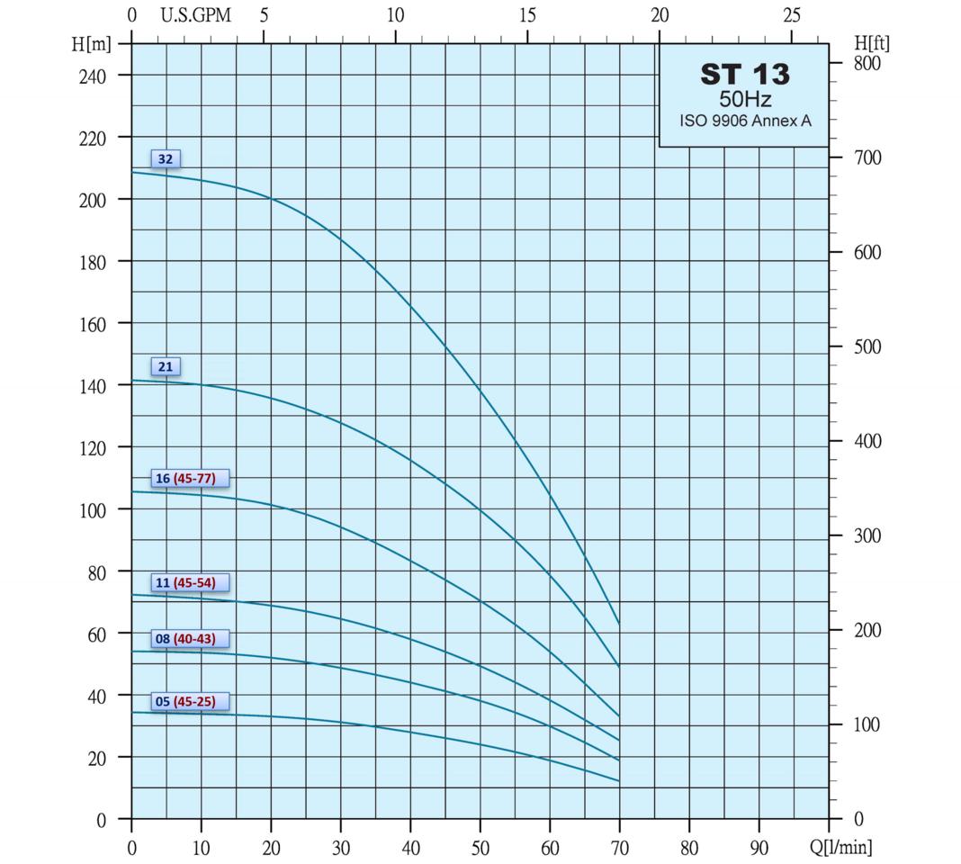 Ponorné čerpadlo DYN 40-43 kombinuje osvedčenú kvalitu talianskeho pohonu SISTEMA s robustnou hydraulikou typu ST. S výkonom 0,55 kW a optimálnym pracovným bodom (40 l/min pri 43 m) predstavuje ideálny štandard pre bežné domáce a menšie komerčné inštalácie. Konštrukcia s plávajúcimi obežnými kolesami z materiálu Noryl a plášťom z nehrdzavejúcej ocele AISI 304 garantuje vysokú odolnosť voči abrázii a korózii, čo umožňuje bezpečné čerpanie vody aj v náročnejších podmienkach s výskytom piesku.
