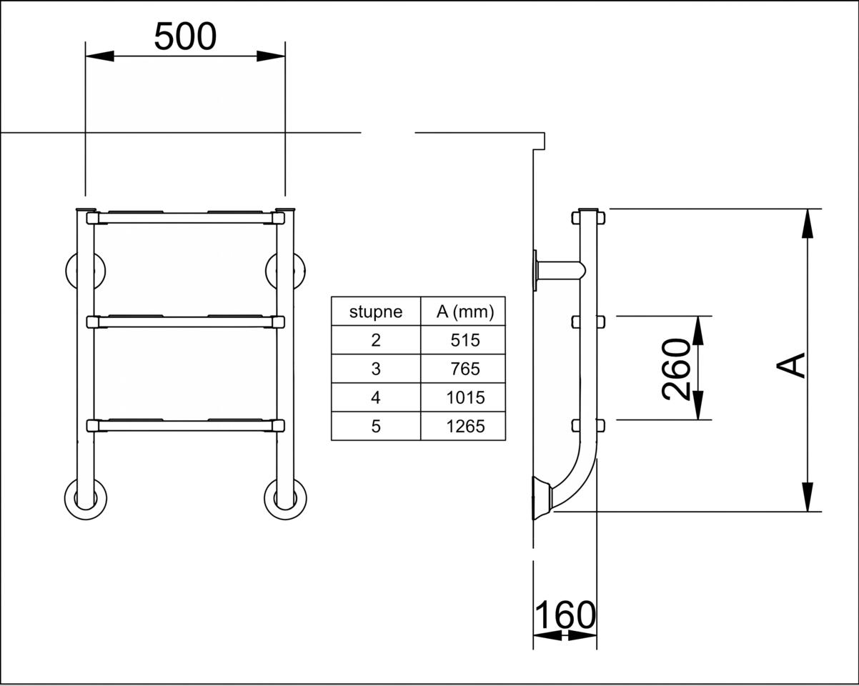 Flexinox spodná časť rebríka 3 stupňový AISI 316
