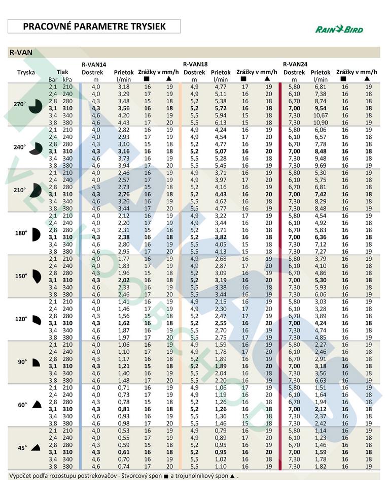 Rotačná lúčová tryska Rain Bird R-VAN 24 45°-270°: Vysoký výkon a presnosť