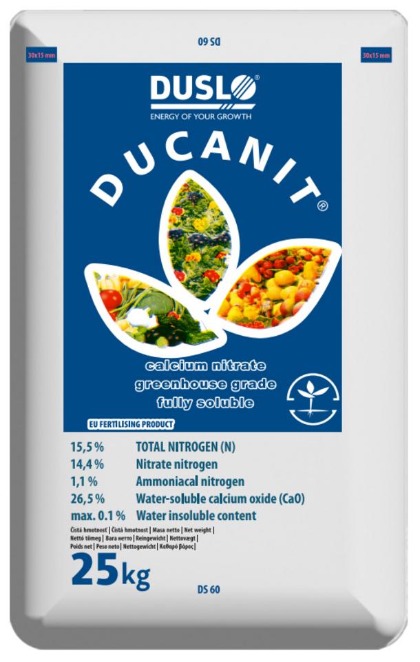 Ducanit je granulované, plne vodorozpustné hnojivo typu dusičnan vápenatý. Obsahuje rýchlo prijateľný dusičnanový dusík a vápnik, ktoré sú okamžite dostupné pre rastliny. Produkt je určený na prípravu živných roztokov pre kvapkovú závlahu (fertigáciu), hydropóniu a na listovú (foliárnu) aplikáciu v poľnohospodárstve a záhradníctve.