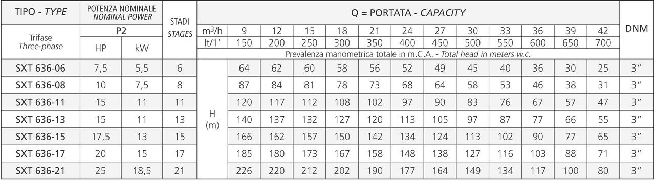 Speroni SXT 636-11 S/S je vysoko výkonné 6" celonerezové ponorné čerpadlo s motorom 11 kW, určené pre najnáročnejšie priemyselné a civilné aplikácie. S maximálnym výtlakom 120 metrov a prietokom 700 l/min zaisťuje spoľahlivú distribúciu vody, napájanie protipožiarnych systémov a poľnohospodárske zavlažovanie. Robustná konštrukcia z ocele AISI 304 garantuje dlhú životnosť aj pri nepretržitej záťaži.