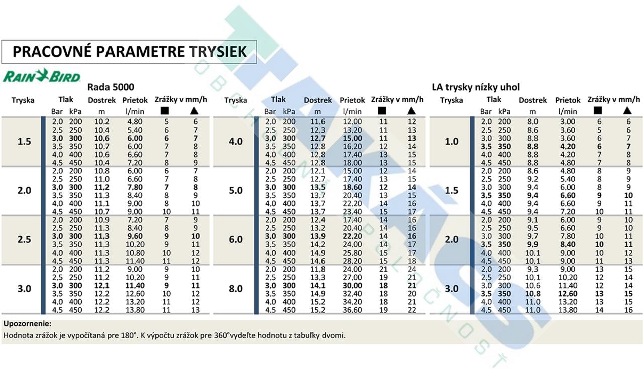 Postrekovače série 5000 sú navrhnuté pre spoľahlivosť a vysoký výkon. Sú vybavené zosilneným krytom pre vyššiu odolnosť, unikátnym troj-britovým stieracím tesnením, ktoré chráni vnútorný mechanizmus pred nečistotami, a zosilnenou dráhou prietoku vody. Trysky Rain Curtain™ produkujú veľké kvapky odolné voči vetru a zabezpečujú efektívnu závlahu aj v blízkosti postrekovača.