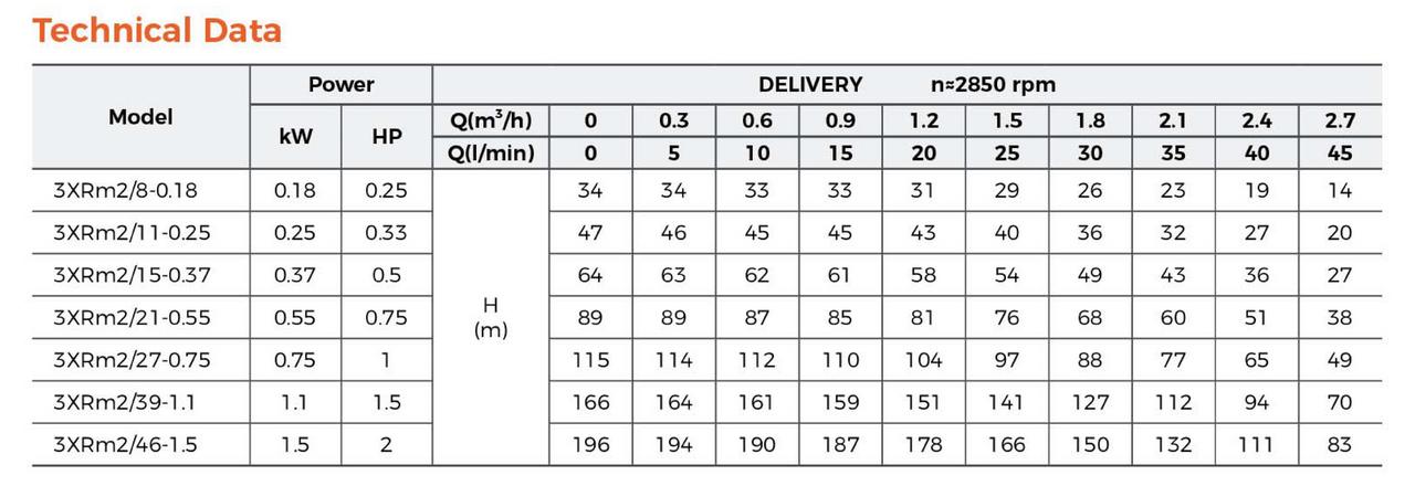 LEO 3XRm2/11 je energeticky mimoriadne úsporné 3" ponorné čerpadlo s výkonom 0,25 kW, určené pre úzke vrty a studne. Vyznačuje sa konštrukciou s plávajúcimi obežnými kolesami, ktorá zaisťuje vysokú odolnosť voči piesku (až 150 g/m3) a dlhú životnosť. Dodáva sa s 25 m káblom a je ideálnym riešením pre menšie rodinné domy, chaty a nenáročné zavlažovanie.