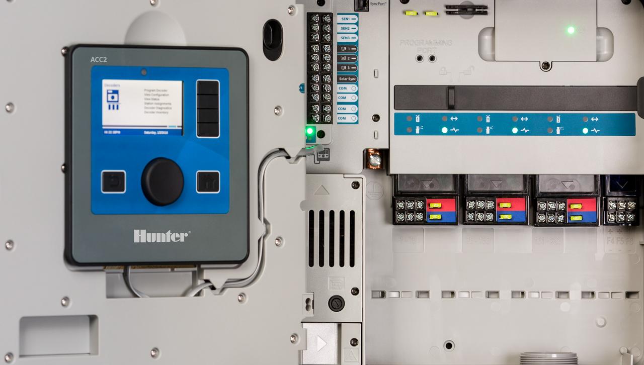 Hunter ACC2_A2C-75D-P je dekodérová riadiaca jednotka pre rozsiahle komerčné zavlažovacie systémy, rozšíriteľná až na 225 sekcií. Ponúka pokročilé funkcie riadenia prietoku, rozsiahle možnosti programovania a cloudové ovládanie cez platformu Centralus.