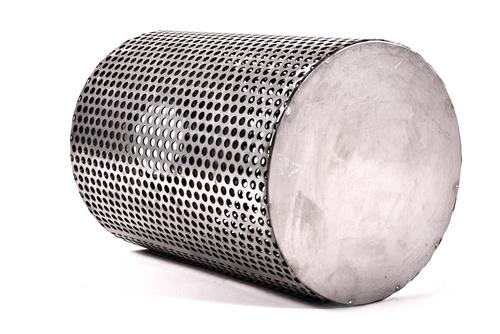 Nerezový sací kôš. Priemer 16cm, celková dĺžka cca 24cm - 22cm samotné telo koša + 2 cm závit (2"F-vnútorný závit). Veľkosť perforácie je cca 5mm.