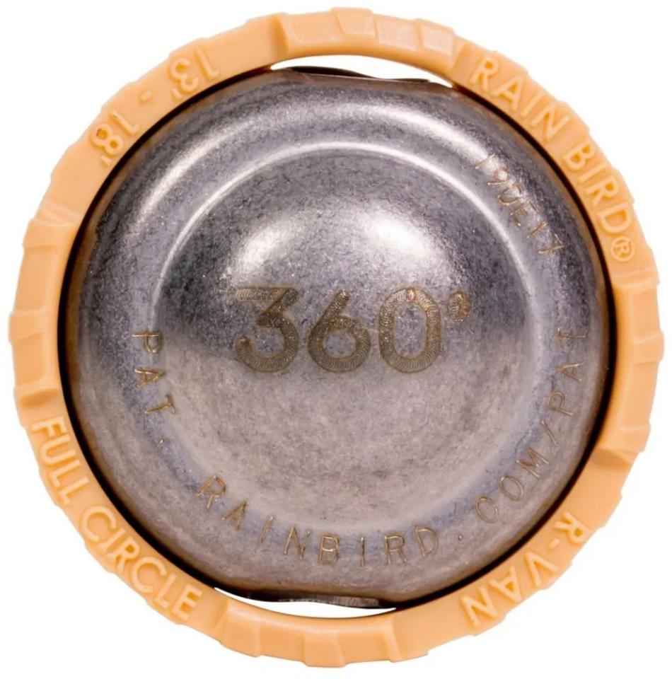 - Pevný uhol: Tryska Rain Bird R-VAN 18-360 zavlažuje celokruhovo teda 360°, v prípade požiadavky na nastaviteľný uhol dostreku voľte trysku Rain Bird R-VAN 18.