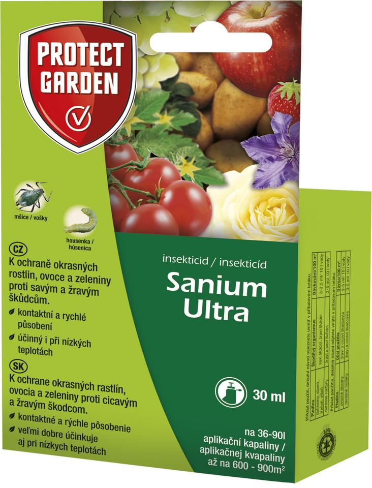 Deltamethrin, účinná látka prípravku SANIUM ULTRA, je svetlostabilný syntetický pyrethroid. Pôsobí ako dotykový a požerový jed. Nemá translaminárny systémový ani fumigačný účinok, preto je potrebné, aby boli postrekom rovnomerne ošetrené všetky časti rastlín. Nepôsobí na roztočce. Účinkom deltamethrinu sú blokované sodíkové kanáliky v centrálnom nervovom systéme škodcu, čím je spôsobený veľmi rýchly knock-down efect. Zároveň deltamethrin pôsobí čiastočne repelentne.