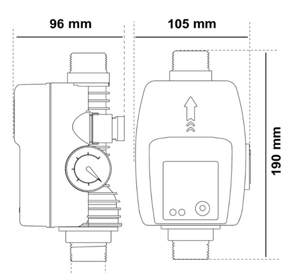 • Komplexná výbava: Zariadenie obsahuje integrovaný analógový manometer pre rýchlu kontrolu tlaku, spätnú klapku a kompletnú kabeláž (vstupná vidlica + výstupná zásuvka).