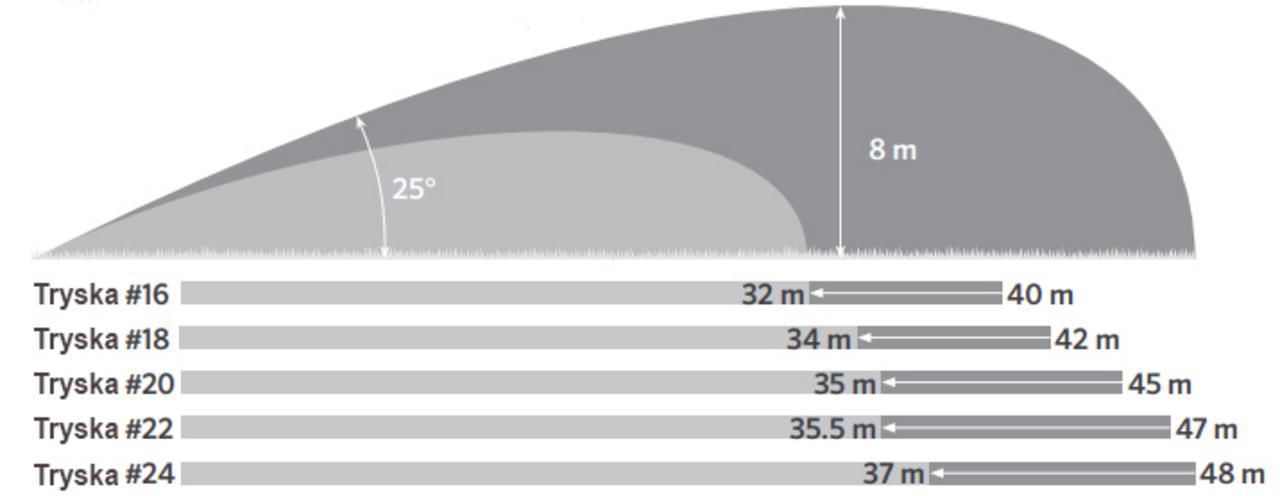 - Vysoký výkon: Veľký dostrek a vysoký prietok zaisťujú kompletné a rovnomerné pokrytie športových plôch.