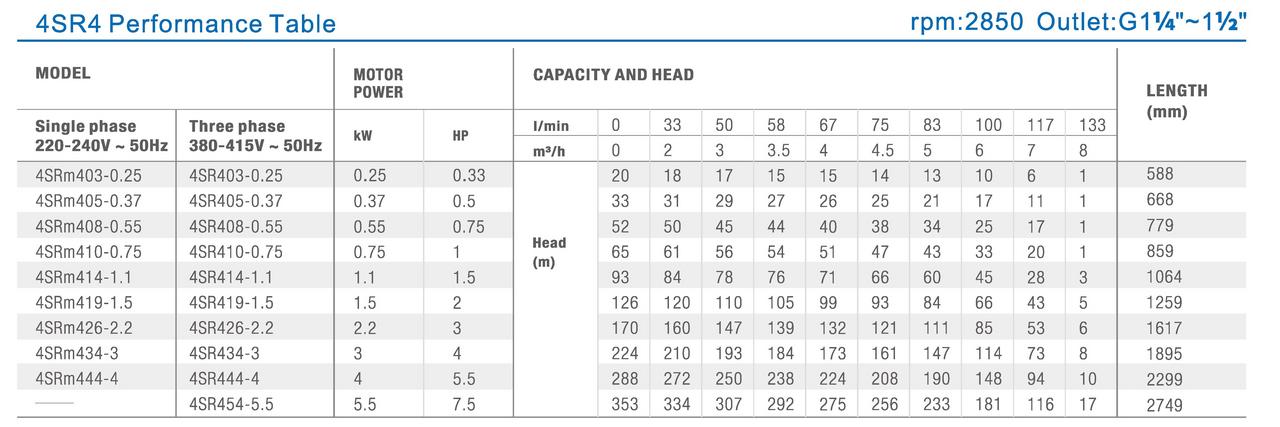 Ponorné čerpadlo JIADI 4SRM 414 predstavuje špičkové riešenie v triede 4-palcových čerpadiel na 230 V. S výkonným 1,1 kW motorom a optimalizovanou hydraulikou ponúka kombináciu vysokého výtlaku (až 93 metrov) a nadštandardného prietoku (až 133 l/min). Tento model je vybavený zväčšeným výtlačným hrdlom 1 1/2" (6/4"), ktoré zabezpečuje efektívny transport veľkého objemu vody s minimálnymi stratami. Súčasťou dodávky je 20-metrový kábel a externá jednofázová ochrana, čo zjednodušuje inštaláciu a zvyšuje prevádzkovú bezpečnosť.