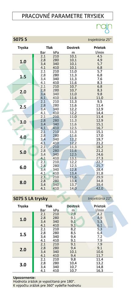 Rain rotačný postrekovač S075 S, výsuv 10 cm + sada trysiek