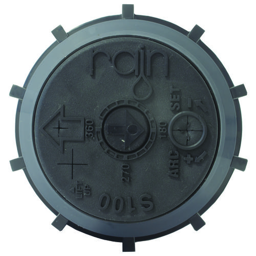 Rotačný postrekovač Rain S100 INOX s vysoko odolným nerezovým výsuvníkom a 1" vnútorným závitom. Poskytuje nastaviteľný uhol výseče 40° – 360° a spojku Arc Memory Clutch proti vandalizmu. Má dostrek 13,1 m – 22,9 m a prevádzkovú spotrebu vody 19,3 l/min – 123,0 l/min pri tlaku 2,8 až 6,5 bar. Kľúčovou výbavou je trojlúčová tryska pre rovnomernú distribúciu a integrovaný zosilnený gumový kryt.