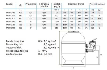 Filtračná nádoba PACIFIC s bočným ventilom je navrhnutá pre potreby súkromných a poloverejných bazénov, kde je kladený dôraz na spoľahlivosť a jednoduchú údržbu. Jej hlavnou prednosťou je umiestnenie 6-cestného ventilu na boku nádoby, čo umožňuje inštaláciu aj do technických miestností s nízkym stropom a poskytuje komfortný prístup k ventilu a veku nádoby. Je vyrobená z vysokokvalitných laminátových materiálov pre dlhodobú odolnosť.