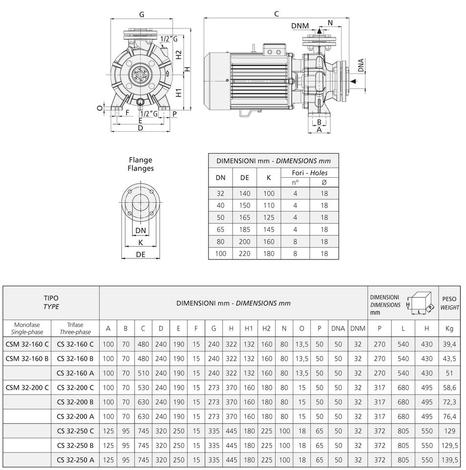 • Pripojenie výtlak: Príruba DN32 (1 1/4").