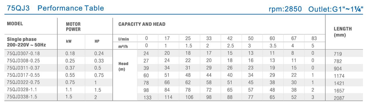Jiadi 75QJD317 je 3" viacstupňové ponorné čerpadlo s 35 m káblom, špeciálne navrhnuté pre úzke vrty s priemerom od 85 mm. Vďaka konštrukcii s plávajúcimi obežnými kolesami z Norylu efektívne čerpá čistú a pitnú vodu so zvýšenou odolnosťou voči abrazívnym časticiam. Predstavuje spoľahlivé riešenie pre zásobovanie rodinných domov, priemyselných objektov a pre poľnohospodárske zavlažovanie.