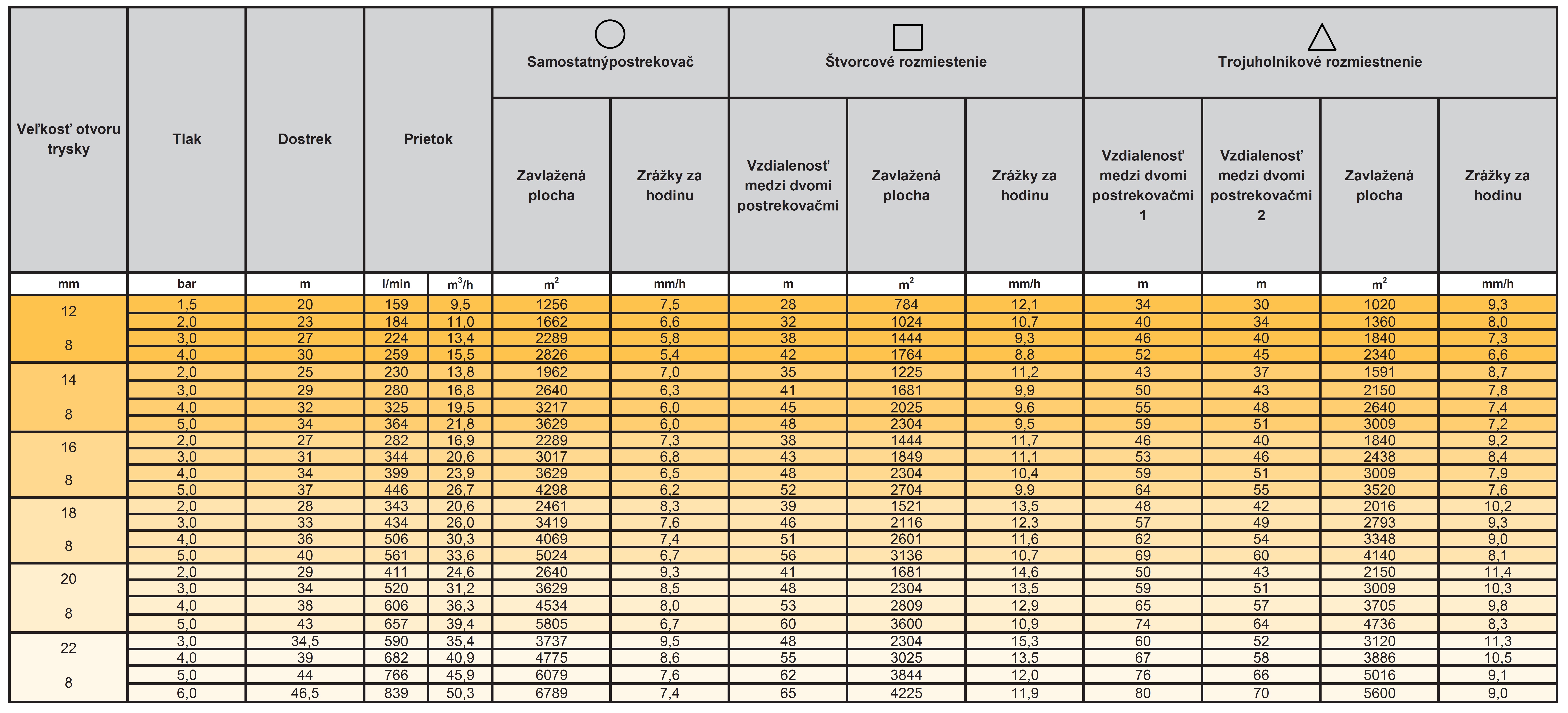 Tabuľka dostrekov a prietoku