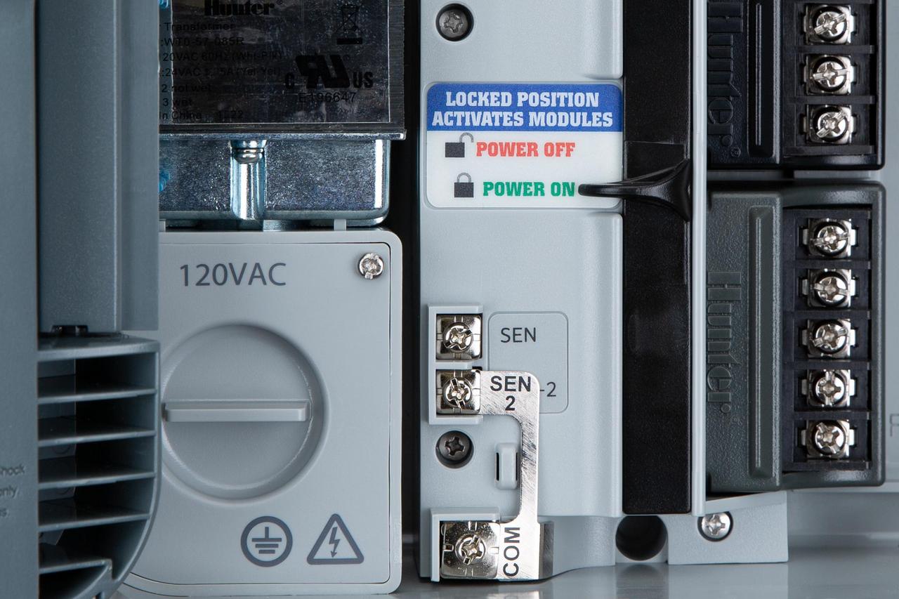 • Pokročilé senzorové vstupy: Dva nezávislé vstupy pre senzory umožňujú pripojenie dažďového senzora (napr. Rain-Clik) a súčasne senzora Solar Sync pre inteligentnú úpravu závlahy podľa počasia.