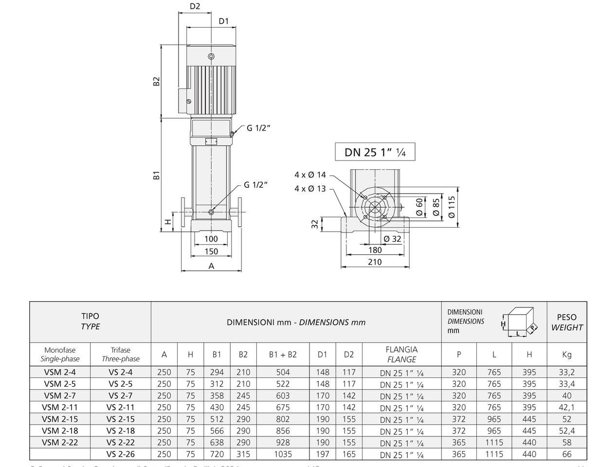 • Pripojenie (Sanie/Výtlak): 1 1/4" (5/4") vnútorný závit / Príruba.