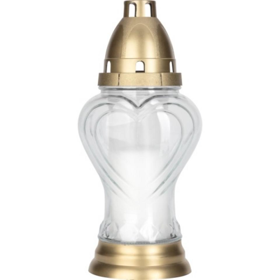 Kahanec 3043 je elegantné sklenené pietne svetlo s výškou 23 cm, ktoré sa vyznačuje subtílnym tvarom a vkusným podstavcom i vekom v zlatej farbe. Súčasťou balenia je parafínová vložka (115 g) s dobou horenia približne 36 hodín, čo predstavuje spoľahlivé a estetické riešenie odolné voči poveternostným vplyvom.