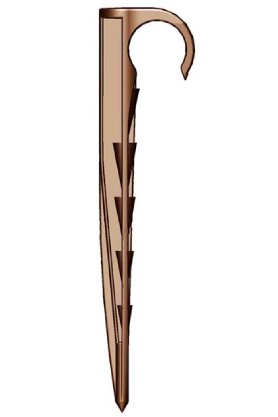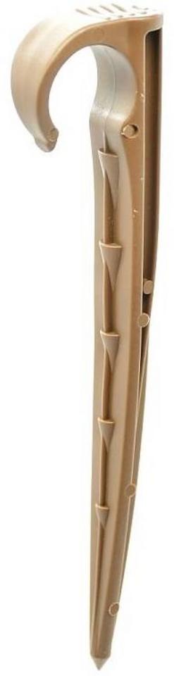 Teco hnedý zemný úchyt s dĺžkou 15 cm spoľahlivo fixuje kvapkové hadice a PE potrubia s priemerom 16 až 20 mm pri povrchu pôdy. Zamedzuje pohybu hadíc vďaka svojej pevnej a UV odolnej konštrukcii.