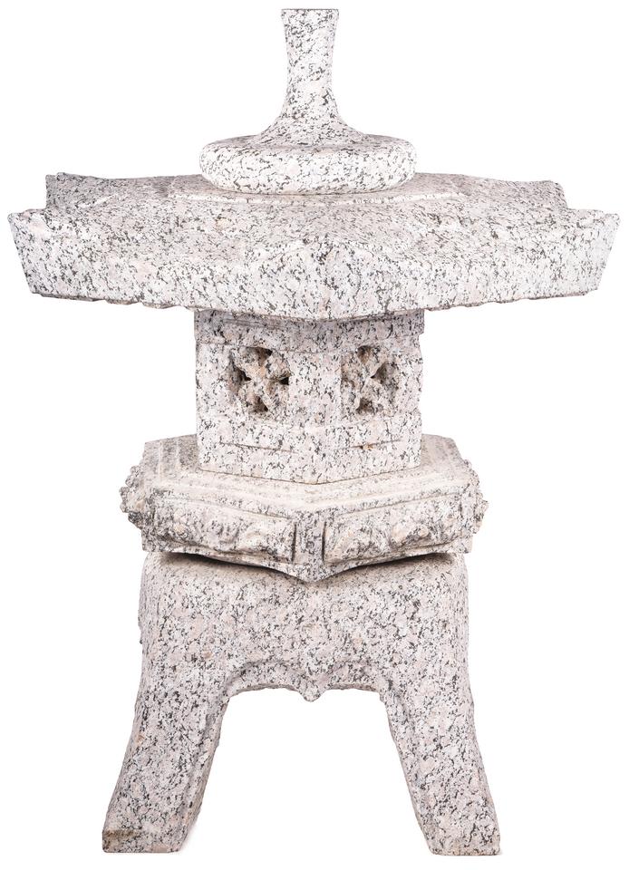 Japonská lampa Rokkaku Yukimi je autentický a masívny kamenný prvok, ktorý svojou geometrickou presnosťou a nízkou siluetou vnesie do exteriéru tradičnú japonskú estetiku, poriadok a stabilitu.