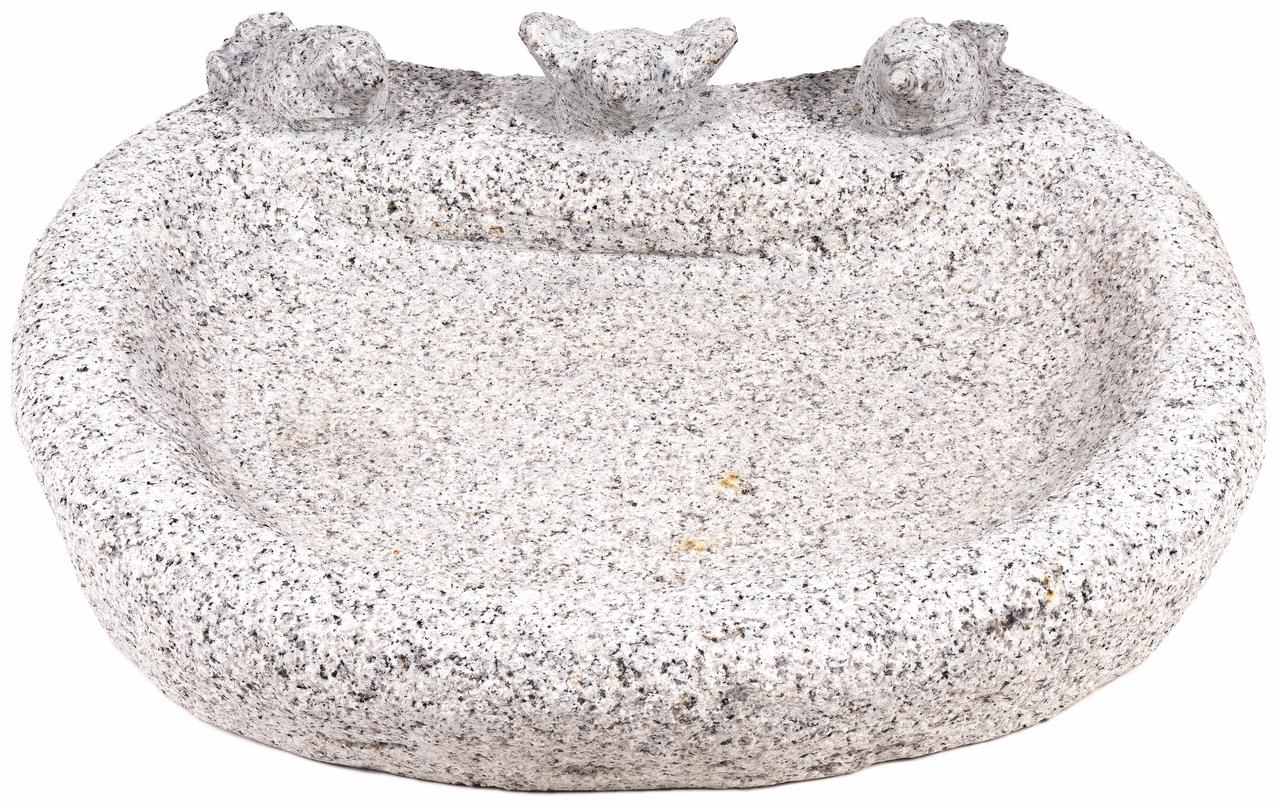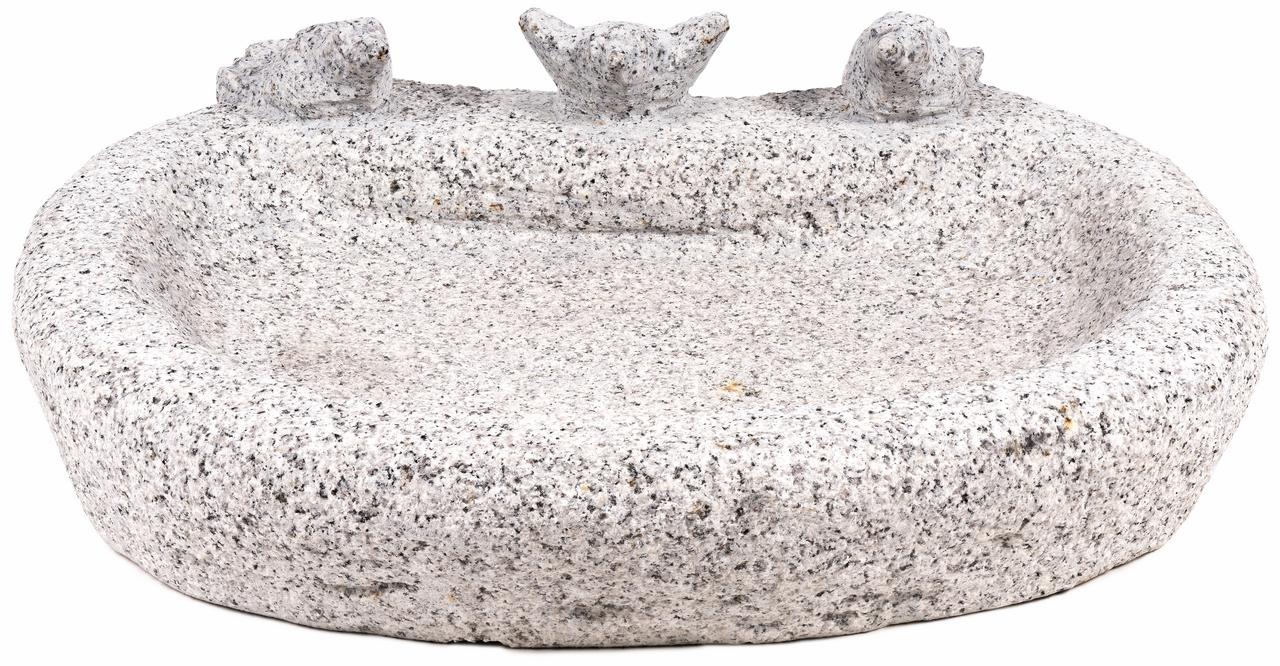 Toto napájadlo je vytesané z masívnej prírodnej žuly, ktorá je synonymom pre nezničiteľnosť a stabilitu. Hlavným estetickým prvkom sú tri kamenné vtáčiky, ktoré sú pevne osadené na okraji misy. Ich prítomnosť nielen skrášľuje samotný produkt, ale pôsobí aj ako prirodzené lákadlo pre živé spevavce z okolia. Žula má prirodzene zrnitú štruktúru, ktorá po naplnení vodou krásne stmavne a odhalí svoju kresbu. Vďaka svojej vysokej hmotnosti stojí napájadlo pevne na akomkoľvek podklade a je plne mrazuvzdorné, takže môže zostať vonku počas celého roka.
