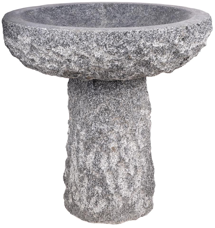 Toto dvojdielne kamenné napájadlo v modernom tmavošedom odtieni je stelesnením stability a nadčasového dizajnu. Je ručne vytesané z vysokokvalitnej tmavej žuly, ktorá je známa svojou extrémnou odolnosťou voči mrazu a mechanickému poškodeniu. Horná misa s priemerom 40 cm poskytuje veľkorysý priestor pre vodu, zatiaľ čo robustná podstava vyvyšuje hladinu do výšky, ktorú vtáctvo preferuje kvôli bezpečnosti a lepšiemu výhľadu. Tmavošedý granit po naplnení vodou nadobúda takmer čierny, sýty odtieň, čo z napájadla robí výrazný estetický prvok každej záhrady.