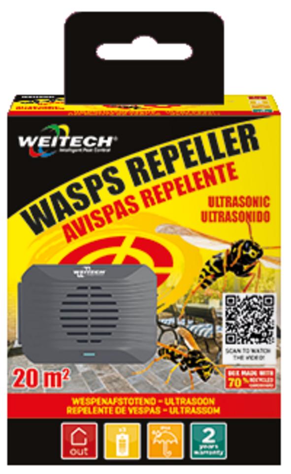 Weitech ultrazvukový odpudzovač osí do zásuvky (230 V) je určený na ochranu menších interiérov do 15 m2. Vysiela špecifické ultrazvukové vlny, ktoré osy vyrušujú a odrádzajú od vstupu do miestnosti či budovania hniezd. Zariadenie je ekologické, tiché, bezpečné pre ľudí aj domáce zvieratá a funguje bez použitia chemických látok.