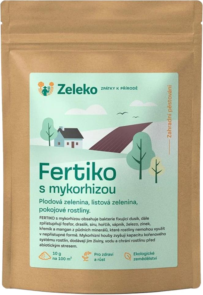 FERTIKO je vybraná zmes prospešných mikroorganizmov (Azotobacter spp., Bacillus spp., Thiobacillus spp., Frateuria spp., Trichoderma spp., Rhizophagus spp.) a mykorhíznych húb vo forme prášku. Tieto mikroorganizmy a huby žijú s rastlinami v symbióze, fixujú a sprístupňujú živiny z pôdy a zvyšujú kapacitu koreňového systému. FERTIKO zlepšuje využitie živín, vody a chráni rastliny pred abiotickým stresom.