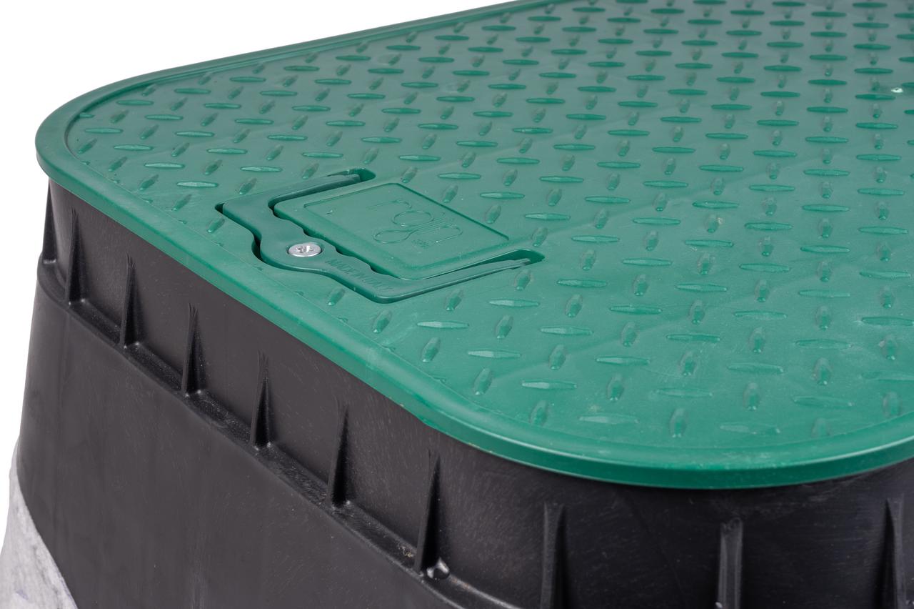 READYBOX Profi Hunter predstavuje dokonalé riešenie pre profesionálne zavlažovacie systémy. Obsahuje všetky komponenty pre okamžité pripojenie, čím šetrí čas a znižuje náklady na inštaláciu. Tento predinštalovaný set ventilovej šachty Rain EzOPEN Jumbo je dodávaný už s predvŕtanými otvormi. Pevný plastový rošt na dne šachty slúži ako organizátor a chráni pred vniknutím krtov. Geotextília na dne a po obvode šachty zabraňuje prenikaniu zeminy. Set obsahuje pripájacie kompresné tvarovky pre PE hadice, pre vstup pripravená je 32 mm tvarovka a na výstupe pre sekcie sú pripravené 25 mm tvarovky. Vodotesná elektrická inštalačná krabica s páčkovými svorkami zjednodušuje zapojenie elektromagnetických ventilov. Ako hlavný uzáver vody slúži 1" sedlový ventil s odvodnením a rozdelenie vody zabezpečuje mosadzný holendrový rozdeľovač. Hydrant s 1" pákovým ventilom a Geka koncovkou slúži ako zdroj vody alebo pripojenie pre kompresor pri zazimovaní. Šachta je dodávaná so štyrmi elektromagnetickými ventilmi Hunter PGV-101-MM-B-DC 9VDC.
