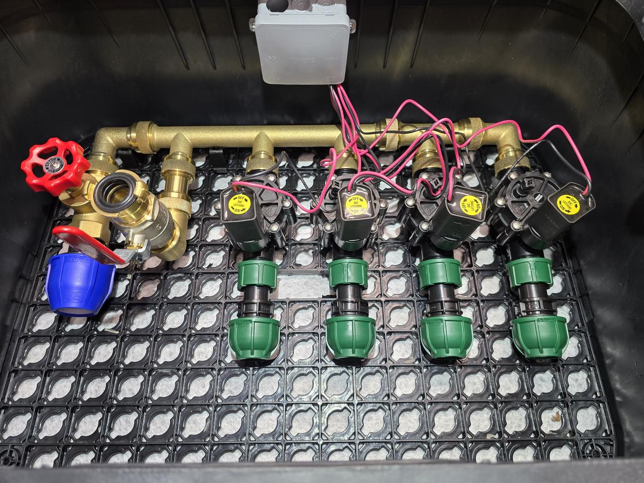 READYBOX Profi Rain Bird 4, 9V s hydrantom je predinštalovaný set ventilovej šachty pre 4 sekcie s 9V elektromagnetickými ventilmi Rain Bird 100-DV-MM-9V, hydrantom a 1“ uzatváracím sedlovým ventilom. Zaručuje jednoduchú a rýchlu inštaláciu s precíznymi detailmi a profesionálnym prevedením.