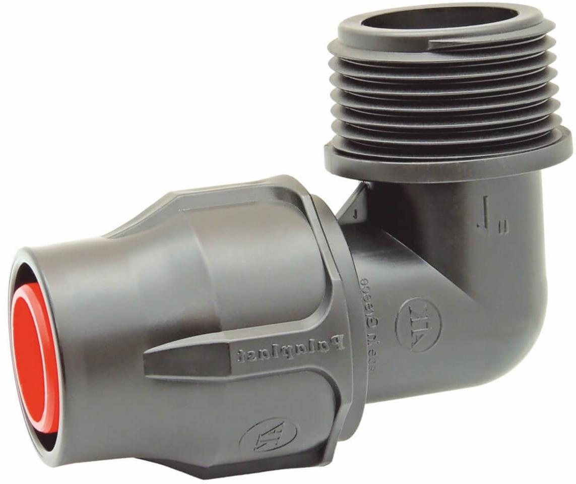 Skrutkovacie koleno Lock 16 mm x 1/2"M je určené na vytvorenie pevného 90° rohového spoja medzi 16 mm kvapkovým potrubím alebo LDPE hadicou a komponentom s 1/2" vnútorným závitom.