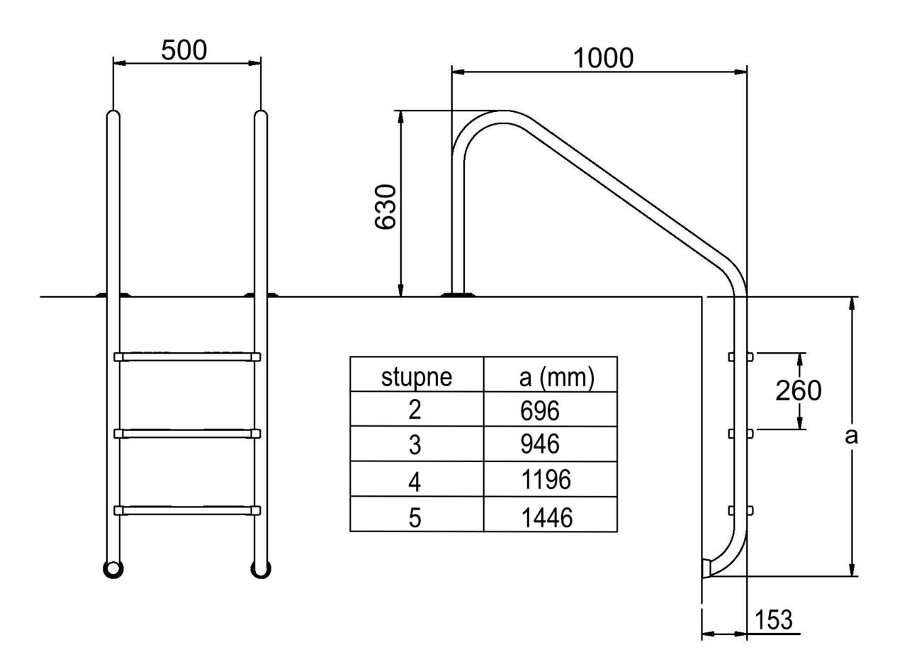 Flexinox rebrík ARC 5 stupňový AISI 316