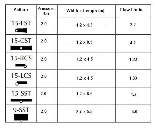 Špecializovaná tryska pre širšie pásy zelene s pokrytím 2,7 x 5,5 m, určená pre bočnú inštaláciu na okraji plochy.