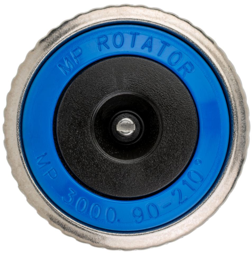 Hunter MP Rotator 3000-90 je revolučná tryska určená pre profesionálne závlahové systémy na plochách s väčším polomerom. Využíva unikátny systém viacerých lúčov s rotačnou trajektóriou, ktoré aplikujú vodu pomaly a rovnomerne. Tento princíp zaisťuje vynikajúcu distribúciu vody, minimalizuje odtok a umožňuje jej efektívne vsiaknutie do koreňovej zóny. Nízka zrážková výška (približne 10 mm/h) je ideálna pre svahovité terény a pôdy s nízkou nasiakavosťou. Tryska je vybavená dvojitým "double-pop" mechanizmom, ktorý chráni vnútorné časti pred nečistotami, a odnímateľným filtrom pre jednoduchú údržbu. Pre dosiahnutie optimálneho výkonu a zaručenie pracovného tlaku 2,8 bar sa odporúča inštalácia trysky na telesá postrekovačov s integrovanou reguláciou tlaku, napríklad Hunter Pro-Spray™ PRS40.